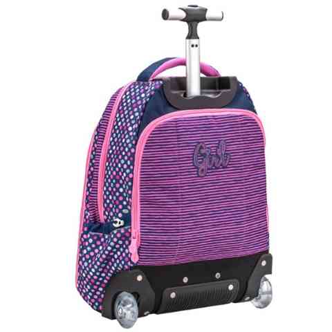 Egy igazán csajos és egyben praktikus iskolatáskával kezdhetnek neki a kislányok a következő tanévnek, hála a Belmil Girl gurulós iskolatáskának ami lányos színeivel és mintájával biztos, hogy a lányok kedvence lesz. A Belmil gurulós iskolatáskái masszív kerekeken gurulnak, és egy állítható alumínium fogantyúval húzhatják a gyerekek, ugyanakkor gyorsan és egyszerűen át lehet alakítani és párnázott, állítható vállpántok segítségével háton is kényelmesen lehet hordani. A táska belő kialakítása is praktikus, hiszen a nagy belső rész több zsebbel van tagolva amelyben akár egy laptop is kényelmesen elfér, az oldalzsebekben pedig a frissítőt tartalmazó kulacsnak van hely. A táska tartósságát a kiváló minőségű anyagok és a műanyag talprész garantálja.