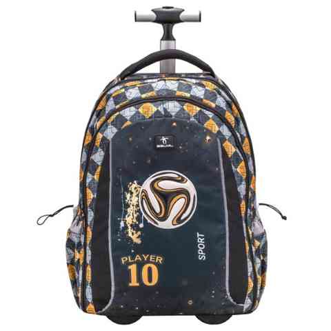 Minden labdarúgást kedvelő fiú, az tisztában van azzal, hogy a 10-es számot általában a legjobb játékosok viselik, és most egy focimintás, 10-es számmal ellátott táskával kezdhet neki a következő tanévnek. A Belmil gurulós iskolatáskái masszív kerekeken gurulnak, és egy állítható alumínium fogantyúval húzhatják a gyerekek, ugyanakkor gyorsan és egyszerűen át lehet alakítani és párnázott, állítható vállpántok segítségével háton is kényelmesen lehet hordani. A táska belő kialakítása is praktikus, hiszen a nagy belső rész több zsebbel van tagolva amelyben akár egy laptop is kényelmesen elfér, az oldalzsebekben pedig a frissítőt tartalmazó kulacsnak van hely. A táska tartósságát a kiváló minőségű anyagok és a műanyag talprész garantálja.