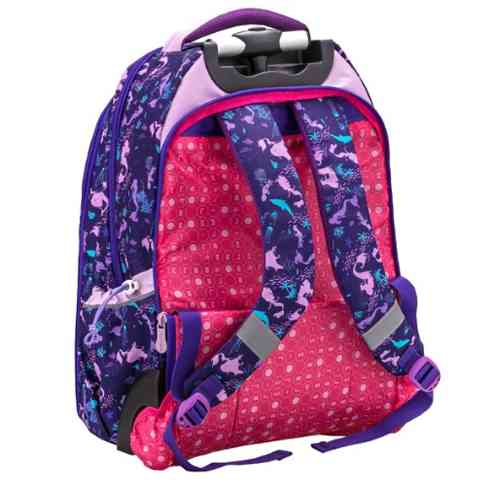 A Belmil Under the Sea iskolatáska a gurulós kialakítása miatta, valamint lányos színeinek és a hableányos valamint delfines mintájának köszönhetően szinte biztos, hogy minden kislánynak a szívébe belopja magát. A Belmil gurulós iskolatáskái masszív kerekeken gurulnak, és egy állítható alumínium fogantyúval húzhatják a gyerekek, ugyanakkor gyorsan és egyszerűen át lehet alakítani és párnázott, állítható vállpántok segítségével háton is kényelmesen lehet hordani. A táska belő kialakítása is praktikus, hiszen a nagy belső rész több zsebbel van tagolva amelyben akár egy laptop is kényelmesen elfér, az oldalzsebekben pedig a frissítőt tartalmazó kulacsnak van hely. A táska tartósságát a kiváló minőségű anyagok és a műanyag talprész garantálja.