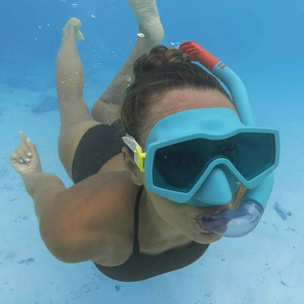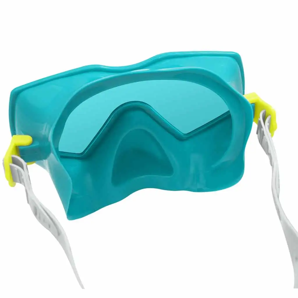 A maszk színezett, ütésálló polikarbonát lencséje UV védelemmel van ellátva, hogy megvédje szemedet a káros napsugaraktól, miközben tiszta és széles látómezőt biztosít a víz alatti élővilág megfigyeléséhez. A kényelmes éltömítés gondoskodik arról, hogy a maszk tökéletesen illeszkedjen az arcodra, megakadályozva ezzel a víz bejutását.