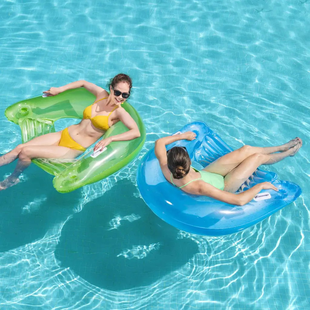 A Bestway ülőmatrac pohártartóval kétféle változatban kínálja a kényelmet és a pihenést a medencénél vagy a tóparton. Ez a felfújható fotel két külön kamrával van ellátva, amelyek egyenletes tartást biztosítanak, és lehetővé teszik, hogy kényelmesen hátradőlj, miközben élvezed a víz melletti nyugalmat. A két beépített pohártartó pedig praktikus megoldást kínál az italaid tárolására, így mindig könnyen elérheted őket pihenés közben.