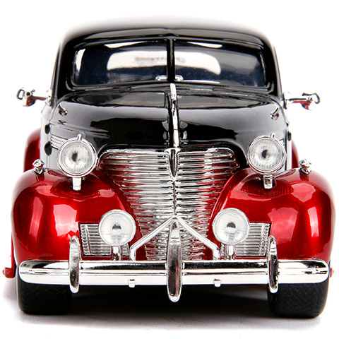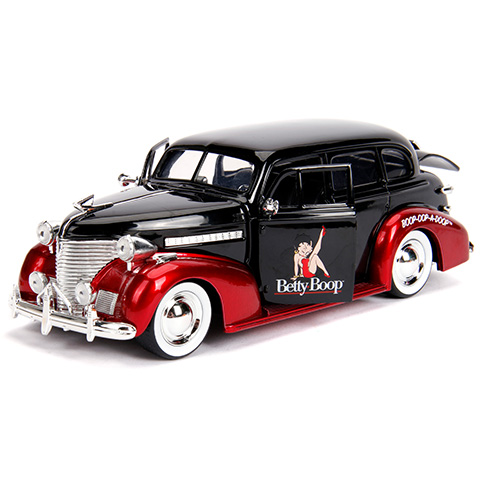 Betty Boop egy klasszikus rajzfilm figura, aki a '30-as évek óta rendkívül népszerű, és remekül illik hozzá a 1939 Chevy Master Deluxe fém autómodell, ami minden tekintetbe Betty Boophoz méltó fekete és pirost festést kapott, amihez remekül illenek a króm díszítőelemk is. A Simba Toys 1/24 méretarányú járgánya a legapróbb részletekig megegyezik a filmben látható autóval, amit a nyitható ajtók még izgalmasabbá teszik, így játékra épp olyan szuper választás, mint a film rajongók számára, hogy a polcra feltegyenek egy ilyen ikonikus modellt.