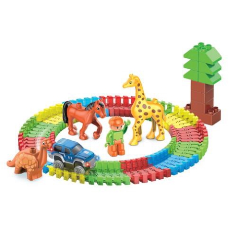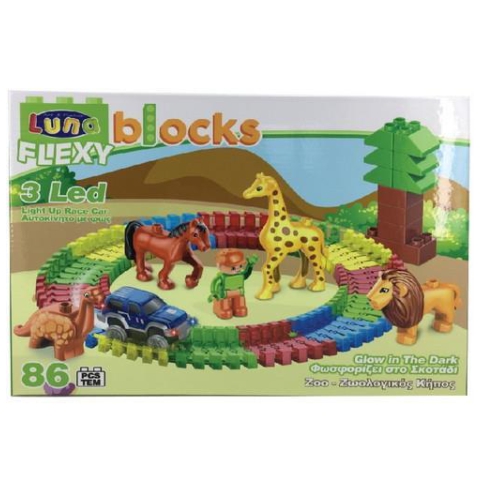 A Blocks Flexi építőjáték különlegessége, hogy az építőkockák mellett a szettben hajlékony sínpálya is található, melyen a készletben található kisautó végig tud menni. A színpompás pálya és autó mellett a csomag tartalmazza a játékfigurát, a kockákból összeállítható fát, a zsiráfot, a lovat és a dinoszauruszt is. A Flexi pálya alakja akár úgy is variálható, hogy az autó megy rajta, ugyanis a pálya szegélyeinek köszönhetően a kocsi nem tér majd le az útról és végig követi a nyomvonalat. A szett kisebb és nagyobb gyermekek számára egyaránt remek választás.