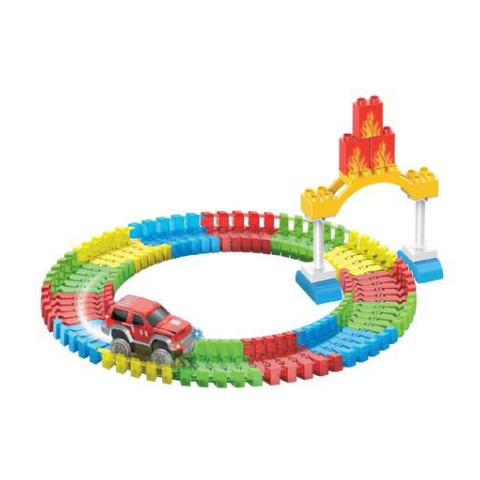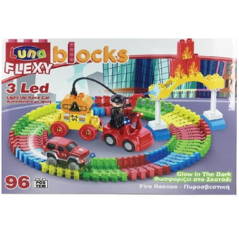 A Blocks Flexi pályaszettek különlegessége, hogy a flexibilis pályaelemeknek köszönhetően a pálya formája akár menet közben is változtatható, miközben a kocsi körbe-körbe megy rajta. Ez a különleges szett egy komplett tűzoltóságot tartalmaz, köztük az elemes Flexi kisautóval, ami menet közben világít, az építőelemekből összeállítható pótkocsis tűzoltóautóval és a kapuval. A csomagban olyan különleges elemek is vannak, mint a tűz mintával dekorált építőkocka, ami még izgalmasabbá teszi majd a játékot a gyerekek számára.
