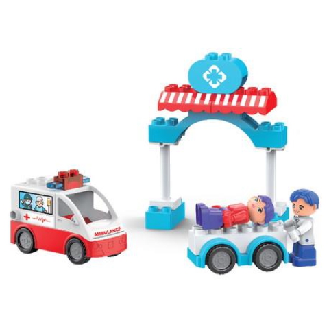 Egy beteget hoznak hordágyon, így nagy szükség van a segítségedre! Gyorsan tedd be őt a menőautóba, majd szállítsd el a legközelebbi kórházba, ahol megvizsgálhatja őt alaposan az orvos. Ez a fantasztikus szett összesen 14db nagy építőelemet tartalmaz, köztük a hordágyat, a mentőautót, a két figurát és a kórház bejárati kapuját. A mentőautóba természetesen beültethető az orvos és hátra betehető a beteg a hátsó ajtó felnyitása után. A nagy építőelemekkel a kisebb gyermekek is remekül tudnak majd játszani.