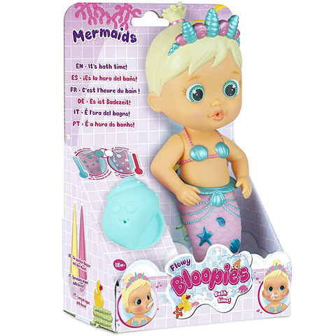 Virágos mintával ellátott rózsaszín búvárruhában érkezik a kislányokhoz Flowy, aki a vízben érzi igazán jól magát! A Bloopies Búvárbébik csapatának tagjaként Flowy békatalpakkal is rendelkezik, a gyerekek pedig a fürdőkádba is magukkal vihetik játszani. A baba különlegessége, hogy a víz alatt feltölthetik, majd onnan kiemelve a hasa megnyomásával spriccelhetnek vele vizet a száján át. A baba kis spriccelő játékkal is rendelkezik, melyet egy mozdulattal felölthetnek vízzel.