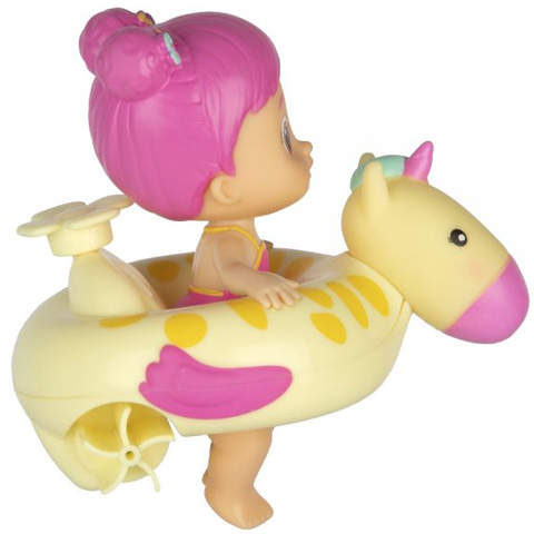 Lina egy igazán tündéri karakter a Bloopies Strandbébik között, aki ezúttal a mesés sárga színű unikornis úszógumijával látogathat el gyermeked játékbirodalmába, a fürdőjátékokat gazdagítva. Lina különleges képességei közé tartozik, hogy vizet spriccel a szájából és az úszógumin található kar meghúzásával egy propeller segítségével közlekedni képes a víz felszínén. A strapabíró és káros anyag mentes műanyagnak köszönhetően gyermeked akár már másfél éves kortól használatba veheti és akár szabadtéren is használhatja a medencében játszva.