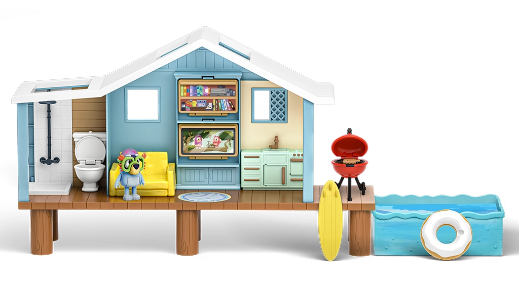 A gyerekek élvezhetik a tengerparti kikapcsolódást ebben a kellemes, berendezett kunyhóban, amely tartalmaz egy konyhát, nappalit és fürdőszobát. Egy kihajtható privát strand várja Bluey-t és barátját, hogy szörfözzenek! A kiegészítők között található egy szörfdeszka, létra, homokvár és úszógumi, valamint egy matricaív a kunyhó személyre szabásához!
