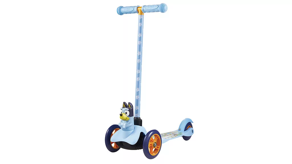 Háromkerekű, önkiegyensúlyozó roller, Bluey-inspirálta dizájnnal, amely stabil platformot biztosít a gyerekek számára, hogy biztonságosan közlekedhessenek.