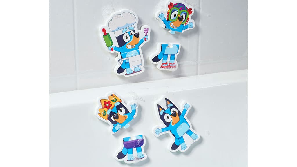 Ez a nyolc darabos kirakó készlet elhozza Bluey-t a fürdés idejére. A habdarabok könnyedén rátapadnak a fürdőszobai csempére, és ugyanilyen egyszerűen el is távolíthatók. A kirakó darabjai a mellékelt hálós tárolózsákban tarthatók, amikor véget ér a fürdés. Ez a készlet nemcsak szórakoztató, hanem segíti a finommotoros készségek fejlődését is, miközben a gyerekek játszva tanulnak és kreatívan tölthetik az időt a kádban.
