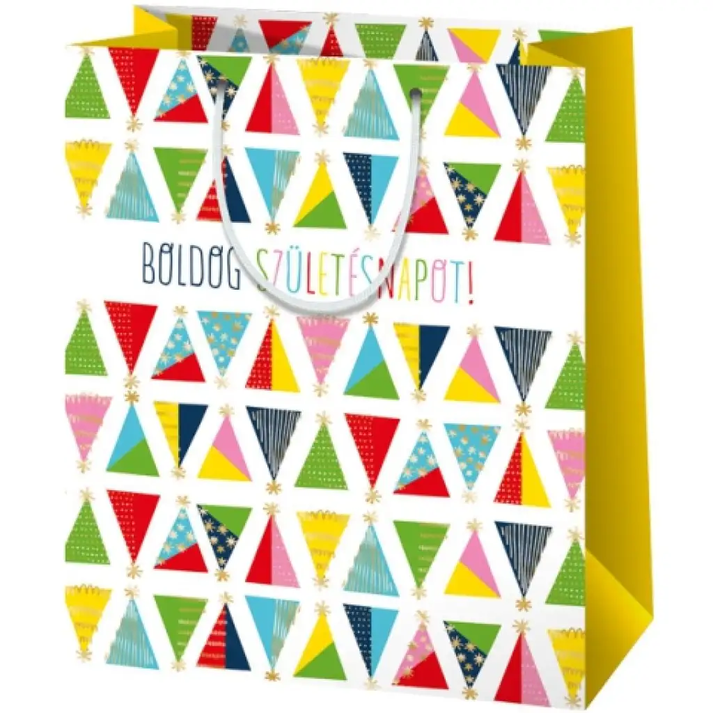 Boldog születésnapot színes mintás közepes méretű ajándéktáska 18x23x10cm-esBoldog születésnapot színes mintás közepes méretű ajándéktáska 18x23x10cm-es