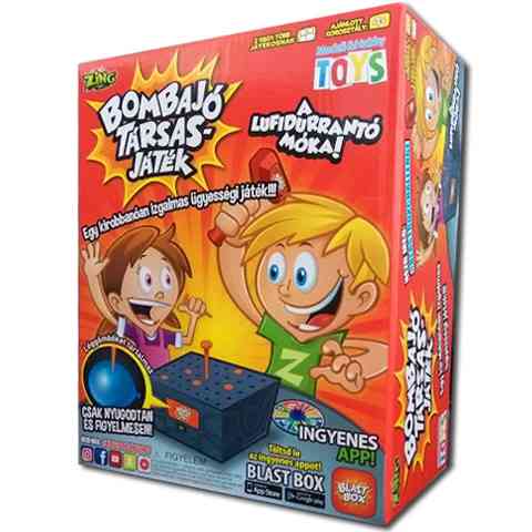 A Bombajó társasjáték szó szerint kirobbanó sikert fog aratni a gyerekek körében, hiszen rendkívül egyszerű, és szórakoztató játékról van szó. Szűmoljátok össze, hogy mennyi játékos veszt rész a játékban, és annyi léggömböt fújjunk fel, és helyezzünk el a Blast Box doboz alá. Ezurán a játékosoknak meg kell pörgetni a pörgettyűt, ami megmuatatja, hogy egy, kettő vagy három szöget kell belekalapálni a dobozba. A szerencsésebbje megúszhatja a kalapálásr, vagy éppen megfordul a kör iránya. Tedd próbára a szerencsédet, és készítsd elő a kalapácsot meg a szögeket, és máris kezdődhet a játék.