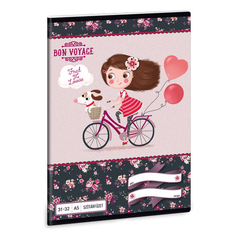 Bon Voyage vidám színvilága és grafikája örömteli pillanatokat varázsol iskolai mindennapjaidba. Fred és Louise izgalmas biciklis kalandjával díszített szótár füzeteket általában több éven keresztül használják a gyerekek, legtöbbször elkíséri őket a végső vizsgákig, ezért igazán magas minőségű papírból készítették. Kemény karton külsejének köszönhetően füzetborító nélkül is tartós, rendezett marad egész évben.