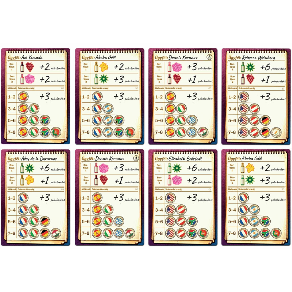 A pontozásnál nemcsak az számít, milyen borokat gyűjtöttél, hanem az is, hogy mennyire felelnek meg az ügyfélkártyádon szereplő elvárásoknak. Bizonyos borvidékek, színek vagy típusok extra pontokat érnek, így érdemes előre tervezni és taktikusan építeni a pincédet. A játék végén az nyer, aki a legtöbb pontot gyűjti össze a jól időzített licitekkel és az okosan felépített borospincével.