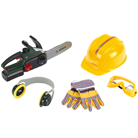 Segíts be a házimunkában és vágd a fahasábokat a szuper kis láncfűrészeddel! A valódira megszólalásig hasonlító játék láncfűrész eredeti Bosch licenc alapján készült, így valóban az igazi egy kicsinyített mása. A gyerekek nem csak hogy a szerszámot a kezükbe vehetik, de még munkavédelmi sisakot, kesztyűt, fülvédőt és szemüveget is felvehetnek mellé. Az elektronikus funkciókkal is ellátott motoros fűrész remek kaland lesz a kicsiknek!