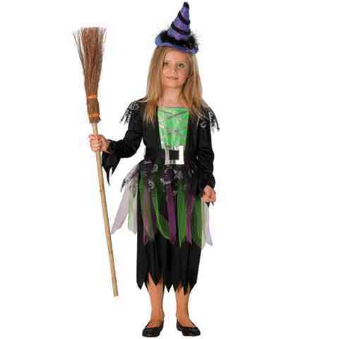 Tartalom: Fekete boszorkány ruha rongyos szoknyával, varrt övcsat. Zárható tépőzáras.