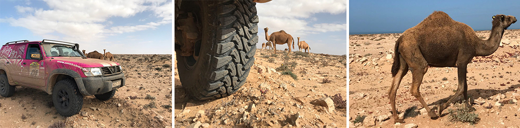 A szemet gyönyörködtető sivatagi látképet tevék gazdagítják, akik igazán közel engedték magukhoz a csapat tagjait és autóját. A Toyo gumiabroncsok láthatóan bírják a gyűrődést, az éles sziklák ellenére egészen jónak tűnik a bordázatuk. A megpróbáltatásuk azonban csak most kezdődik, hiszen a verseny hátralévő szakaszai kimondottan a sivatagban, a sziklás-köves úttalan utakon folytatódik.