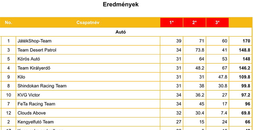 Az előző helyzetjelentésünkben már utaltunk arra, hogy megosztjuk veletek a csapat jelenlegi helyzetét a tabellán, amelyet most nagy örömmel meg is teszünk, hiszen a turbó meghibásodása és a fél napos kiesés ellenére is a csapat az első helyen áll, vezetve ezzel a mezőnyt. A versenynek azonban még nincs vége sőt! Az előttük álló kilenc nap még komolyabb megpróbáltatásokat tartogat a versenyzők számára, amelyeket mi is kiváncsian várunk, természetesen mindenről beszámolunk.