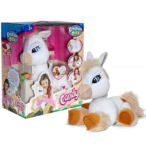 Egy igazi játszótársat szerezhetsz be magadnak, akivel mindig vidám hangulatban telhet a játék! A Candy névre hallgató póni valódi mozgásokkal és hangeffektekkel is szórakoztatja a gyerekeket, interaktív pónijuk kifejezi ha álmos vagy azt is ha éppen egy kis répát enne. Candy a fejét mozgatja, szemeivel pislog és elalváskor lecsukja azokat. Ha sokáig magára hagyod, Candy magától álomba szenderül.