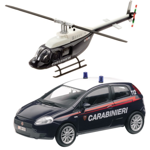 Ez a fantasztikus szett egy rendkívül részletgazdagon kidolgozott helikoptert és a Fiat Bravo tökéletesen kidolgozott fém modelljét tartalmazza 1/43-as méretarányban.