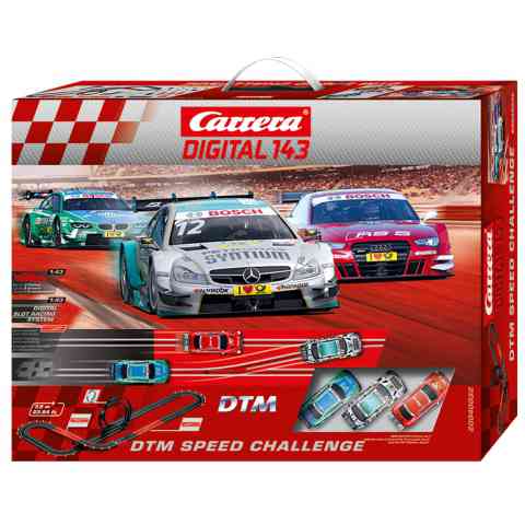 Itt a lehetőség, hogy három vérbeli német szörnyeteggel szálljatok ringbe és átéljétek az izgalmas DTM versenyek világát otthon. A Carrera 143 DTM Speed Challenge kapásból 3 autót is tartalmaz, melyeket azonnal kipróbálhattok a technikás elemekkel tarkított pályán. Egy Audi, egy BMW és egy Mercedes volánja mögé pattanhattok be, hogy megszerezzétek a győzelmet. A pálya sávváltó elemeket is tartalmaz, mivel a Digital 143 pályákon ez már lehetséges. Előzgessetek, vágjatok be a másik autó elé és érjetek be elsőként a célba a társaitok előtt. Ez a pálya a tökéletes választás, ha izgalmas versenyekre vágytok!