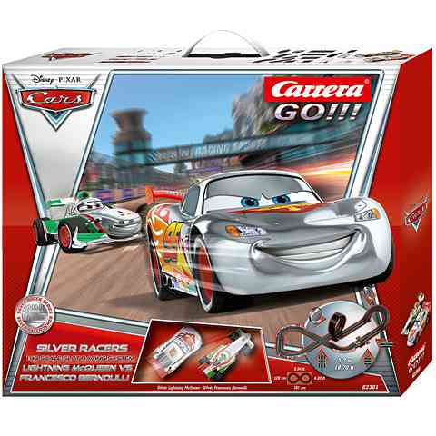 A verseny immáron csak két kocsira korlátozódott, a többiek mind lemaradtak. Villám McQueen és Francesco Bernoulli ezüst színben pompáznak, így a verseny még különlegesebb lesz. Haladj át a hurkon, vedd be a kanyarokat és gyorsíts ki az egyenesekben. A játék szórakoztató lesz, és egy igazi Verdák versenyt is átélhetsz. A Carrera Go! pályaszett különleges élményt nyújt minden gyereknek!