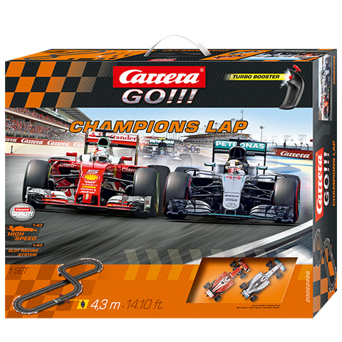 A Carrera GO Champions lap versenypályán végre kiderülhet, hogy melyik versenyző és melyik csapat az igazi bajnok. A rajtvonal mögött Vettel várja a jelzést a Ferrari SF16-H autójával, az ellenfele pedig Hamilton a Mercedes F1 W07 Hybrid-del. Lássuk ki lesz a nyerő a tűzpiros olaszok egy német pilótával, vagy a német ezüst nyíl egy brit versenyzővel? A részletgazdagon kidolgozott kisautók a szobába varázsolják majd a benzingőzzel átitatott versenypályák hangulatát és remek szórakozást garantálnak. A kocsik erős villanymotorral vannak szerelve, így a győzelem csupán rajtatok és a vezetéstechnikátokon múlik.