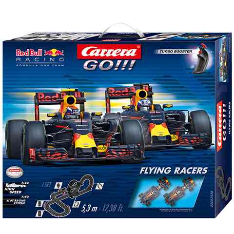 Alighanem a legizgalmasabb forma1-es pálya lenne a versenynaptárban az amelyet a dobozban található elemekből össze lehet építeni, hiszen a kereszteződés mellet egy elképesztő döntött kanyart valamint egy teljes hurkot is tartalmaz. Az izgalmas pályán pedig a RedBull két kiváló versenyzője Max Verstappen és Daniel Ricciardo mérheti össze a tudását. A részletgazdagon kidolgozott kisautók a szobába varázsolják majd a benzingőzzel átitatott versenypályák hangulatát és remek szórakozást garantálnak. A kocsik erős villanymotorral vannak szerelve, így a győzelem csupán rajtatok és a vezetéstechnikátokon múlik.