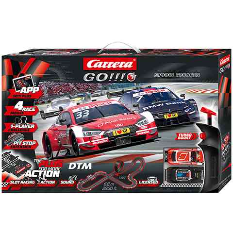 Sokan úgy tartják, hogy az igazi versenyeket nem a Forma 1-ben kell keresni, hanem a DTM-ben, vagyis a német túraautó bajnokságban. Ezen az elképesztő versenypályán két nagyon rutinos versenyző mérheti össze az erejét. A BMW volánja mögött a francia Bruno Spengler a 2012-es bajnok, míg az Audi RS 5-ben René Rast aki 2017-ben győzedelmeskedett az összetettben. A futam izgalmát garantálja a 360 fokos hurok, és a meredeken megdöntött kanyar. A Pit-Stop játék, amely nagy ügyességet kíván meg a boxutcában, valamint az egyedi GO!!! Plus toldósínek további kihívásokról gondoskodnak. Az autóversenyzés sohasem volt még olyan izgalmas, mint az új Carrera GO! Plus pályákkal. A GO! Plus vezérlőegység és boxutca okos-készülékkel összekötve számtalan szórakoztató funkciót biztosít a versenyek alatt. A szellemautó funkciónak hála, a GO! Plus pályarendszereken akár egy játékos is versenyezhet a pálya által irányított autó ellen!