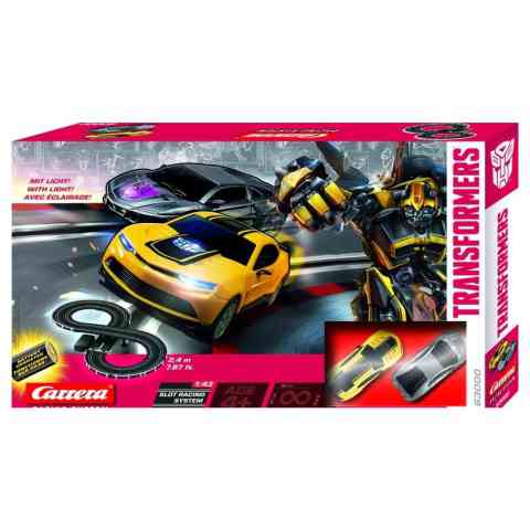 Vesztegzár és Űrdongó ismét összecsap, ám ezúttal a győztes a leggyorsabb robot lesz! A két Transformer autó alakban lép színre a Carrera új, kompakt méretű elemes pályáján, mely tökéletes kezdőknek és haladóknak egyaránt. A Sárga Chevrolet Camaro és a Szürke Lamborghini Aventador az irányításotok alatt száguldhat körbe-körbe a taktikás, éles kanyarral és emelkedővel tarkított 8-as alakú autópályán. A játékszett működéséhez mindössze 4db D típusú elem szükséges, melyeken kívül mindent megtaláltok a csomagban!