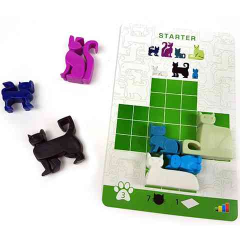 A macskák nagyon különleges állatok, akik valamiért szeretik egész kis helyre vagy dobozba bepréselni magukat, de most a te logikádra is keményen szükség lesz ahhoz, hogy a cicák elférjenek a számukra kijelölt területen. A játékban tucatnyi különféle színű és formájú cica található, illetve negyvennyolc feladatkártya, amelyek egyre nehezebb feladványok elé állítja a játékosokat. Rá kell jönnöd, hogyan tudnak a megadott cicák összebújni a feladat szerinti területen! Válassz egy kihívást, és rendezd úgy a különböző méretű és formájú cicákat, hogy pontosan kitöltsék a lapon kijelölt területet.