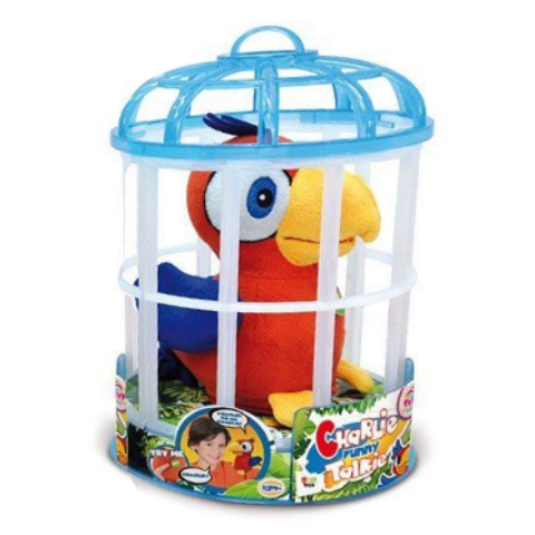 Charlie a beszélő papagáj csak ül a kalitkájában és csendben figyel, de ne tévesszen meg ez a csendes szemlélődés, mert ahogy azt a papagájokról tudjuk, Charlie is képes arra, hogy beszéljen. Nyomd meg a madár hasát a megjelölt helyen, várd meg míg krákog, és egy pittyenéssel nem jelzi, hogy felkészült a feladatra. Ezután mondj valamit, és meglátod Charlie szépen elismételi a neki mondott szavakat. Charlie egyébként egy nagyon kedves papagáj, nyugodtan kiveheted a ketrecből, hiszen puha anyagának köszönhetően nagyszerű játék is egyben. Ismerkedj meg te is a színes, és vidám Charlieval, játssz vele, és beszéltesd, mert egy papagáj akkor a legvidámabb, ha foglalkoznak vele.