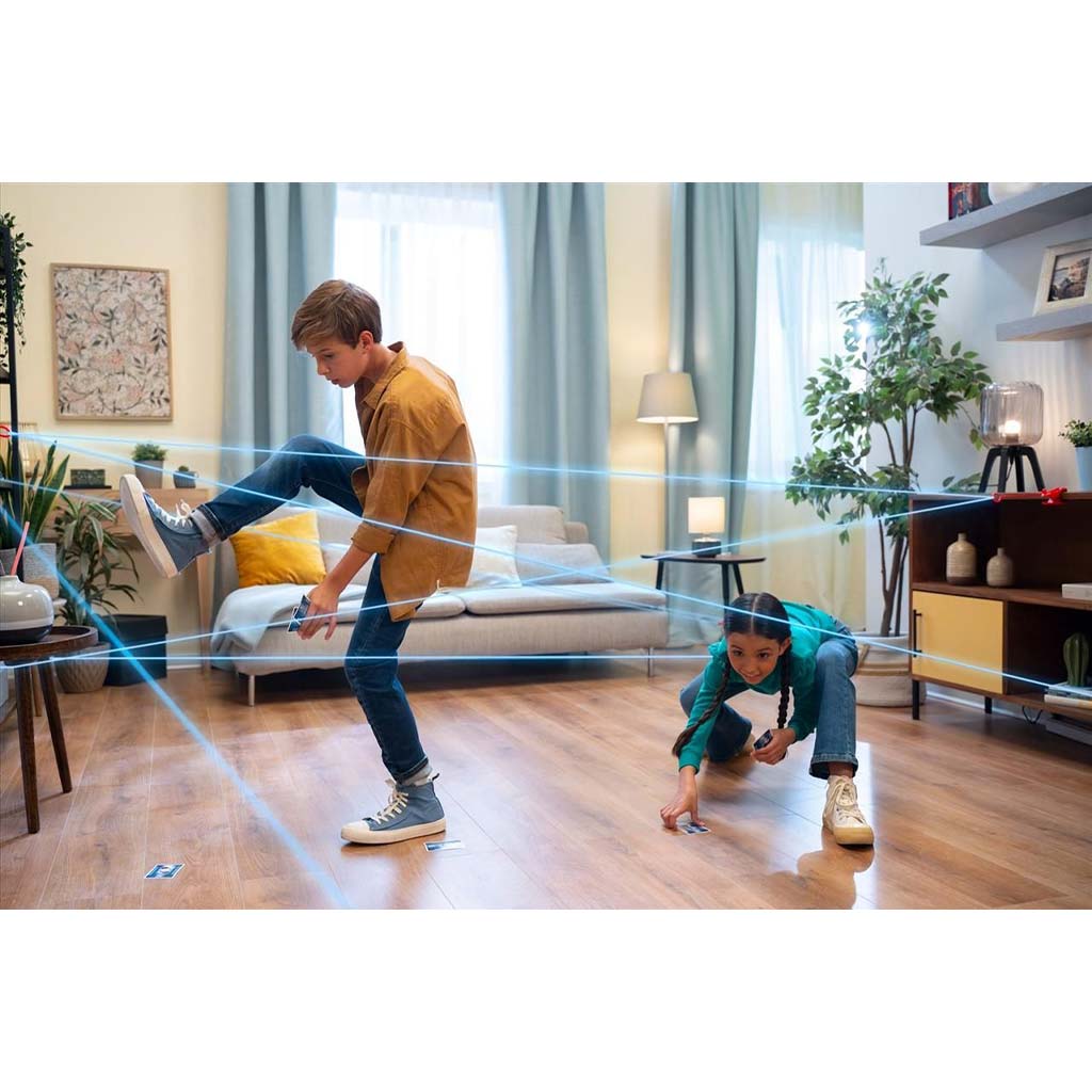 A játéktér felállítása könnyű és rugalmas – a zsinórokat szabadon felfogathatjátok bármilyen bútorhoz vagy felülethez, így minden játék új pályát jelent. A visszaszámláló és a mozgásérzékelő szenzorok gondoskodnak a feszültségről: ha valaki hozzáér a „lézerhez”, a bomba gyorsabban ketyegni kezd! A játék célja, hogy eljuss a vezérlőhöz, és időben leállítsd a visszaszámlálót. Egyedül is próbára teheted magad, de többen is játszhatjátok, így igazi csapatmunkává válik a küldetés.