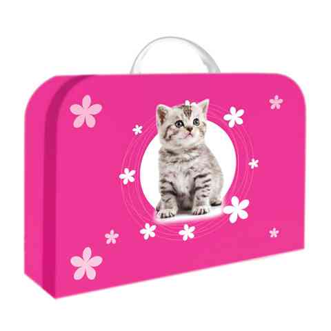A cicánál bájosabb, népszerűbb állatot találni igen nehéz. Egy ilyen aranyos, puha szőrpamacsot, aki ennyire érdeklődve, ennyire játékosan tekint a világra, mindenki szeret. Ez a kislányos papírbőrönd tehát azoknak a készült, akik kincseiket pont ebbe, pont egy ilyen bőröndbe kívánják elrejteni a világ elől, vagy épp egy ilyen bőröndben szeretnék az óvodába eljuttatni kedvelt játékukat. A bőrönd füle és csatja műanyag, mely biztonságossá, hasznossá teszi a ezt a használati tárgyat.