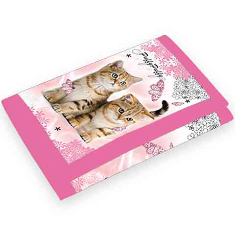 Gyűjtsd a zsebpénzed a csinos kis pénzutcában! A rózsaszín és fehér alapszínű pénztárcán édes kis cicák láthatóak, melyek a kislányoknak egészen biztosan tetszeni fognak. A belső rekeszekben a fémpénznek és a papírpénznek is megtalálod a helyét, valamint egyéb kártyákat is tárolhatsz benne. A gyerekek így biztonságosan vihetik pénzüket az osztálykirándulásra, vagy épp csak az iskolába. A kis pénztárca az iskolatáskában is hordozható.