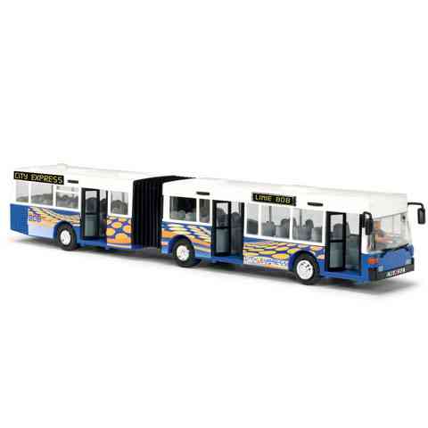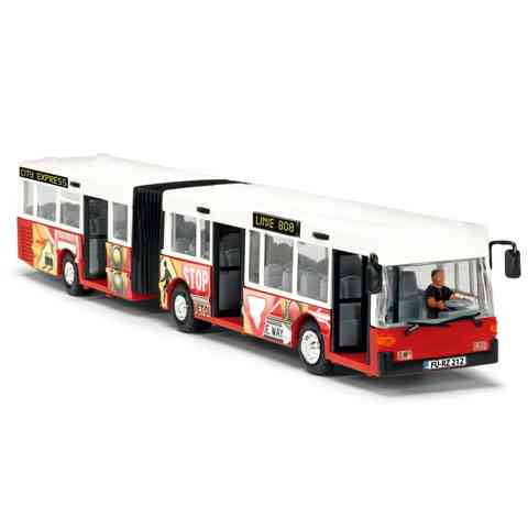 Minden nagy várost keresztbe-kasul behálóznak a busz útvonalak, és a hatalmas tömegközlekedést szolgáló járművek midig csodálattal töltik el az gyerekeket. Ebben a csomagban egy hatalmas, 40 centiméter hosszú csuklós buszt találunk, valóban működő ajtókkal, a tető szintjében elhelyezett járatkijelzővel, és természetesen egy buszsofőrrel a volán mögött. A Simba Toys járművei a gyönyörű és kiemelkedően részletgazdag kidolgozásának köszönhetően teljes mértékben úgy néznek ki mint a valódi járművek.