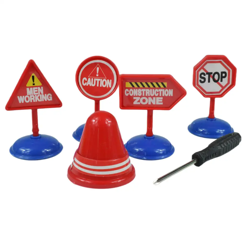 A szett tartalmaz továbbá öt különböző jelzőtáblát, amelyek segítik a játék realisztikusabbá tételét. Ezekkel a táblákkal gyermeked pillanatok alatt létrehozhatja saját szemétszállítás szimulációját vagy épp egy izgalmas építkezést a játékbirodalmában.