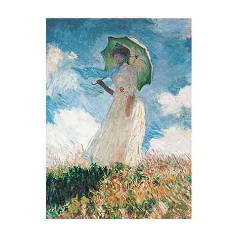 Claud Monet volt a leghíresebb Francia impresszionista festő. A Nő esernyővel című alkotásán remekül megfigyelhető az impresszionista irányzaton belül népszerű pointillista festésmód, ahol a képet szinte apró ecsetvonások alkotják, melyek közelről csak pontoknak tűnnek, de távolabbról csodálatosan kirajzolódik a kép teljes egésze. A képet 1875-ben festette a művész és máig az egyik legismertebb alkotásaként tartják számon.