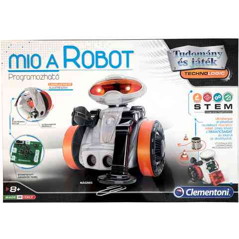 Bújj egy igazi elektroműszerész mérnök bőrébe és alkosd meg az első robotodat amelyet saját kezűleg programoztál be. Mio, a kedves kis robot könnyedén programozható, így megismerteti a gyerekekkel a programozás alapjait, egyszerű parancsokat adhatnak a kis robotnak. A robot fémkeresővel felszerelt, így a földön találhat összes fém tárgyat képes felkutatni. Alakítsd át robotodat és tanulj meg sok mindent a programozásról, hogy igazi robotfejlesztővé válhass! A robotot rajzolásra is beprogramozhatod, majd ha a filcet a kezébe adtad különleges grafikákat hozhatsz létre segítségével. Hívd ki barátaid egy különleges programozós versenyre!
