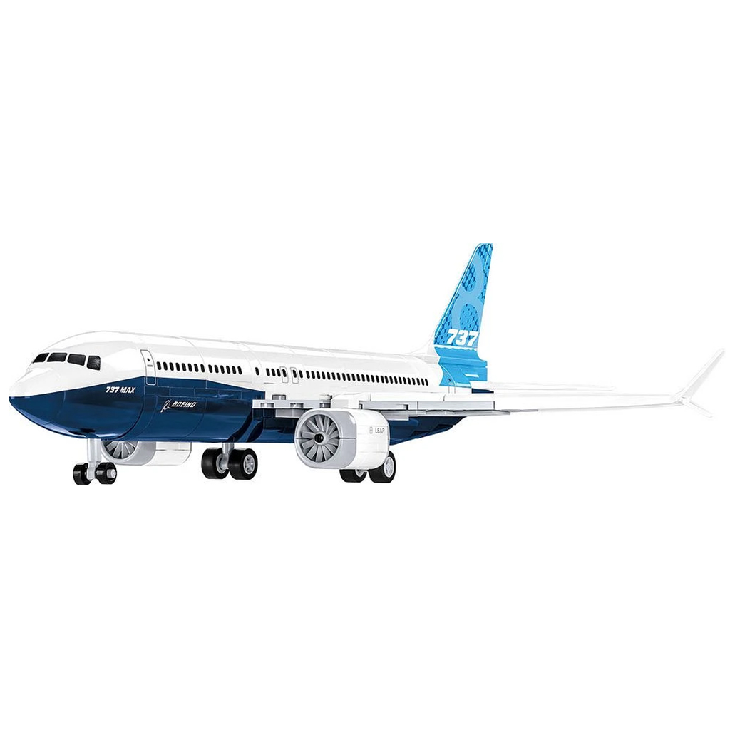 Ez a hangulatos COBI építőjáték-készlet lehetővé teszi a világ legnépszerűbb keskenytörzsű közepes hatótávolságú utasszállító repülőgépének, a Boeing 737-8 (más néven Boeing 737 MAX 8) modelljének megépítését. A készlet 340 kiváló minőségű építőelemet tartalmaz, amelyek – 1:110 arányú méretarányban – teljesen hűen tükrözik a valós jármű formáját. A modell forgatható kerekeken, hajtogatható leszállófelszereléssel, alul függesztett, rotort forgató motorokkal és egy elegáns, fekete kiállítóállvánnyal érkezik, amelyhez névtábla is csatlakoztatható.