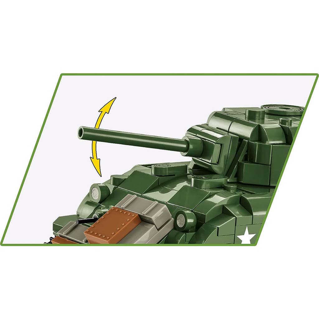 A COBI M4A1 Sherman építőjáték egy lenyűgöző és részletgazdag modellje a második világháború ikonikus amerikai közepes harckocsijának, a Shermannek. A készlet 663 darab kiváló minőségű építőelemből áll, 1:35 méretarányban készült, így az elkészült modell hossza kb. 17 cm, magassága 11,5 cm, szélessége 8 cm. A kidolgozás során olyan valósághű részletek kerülnek előtérbe, mint a működő lánctalpak, forgatható torony, mozgatható lövegcső, nyitható felépítményfedél, valamint egy kis méretű blokkban elrejtett makettmotor. A készlet két figurát is tartalmaz: egy amerikai harckocsizó sisakkal és M3 „Greaser” gépkarabéllyal, valamint egy gyalogos katonát vastag kabátban, M1 Garand puskával. A készlet része továbbá egy dekoratív terepasztalelem is: egy kerítésbokor részlet.