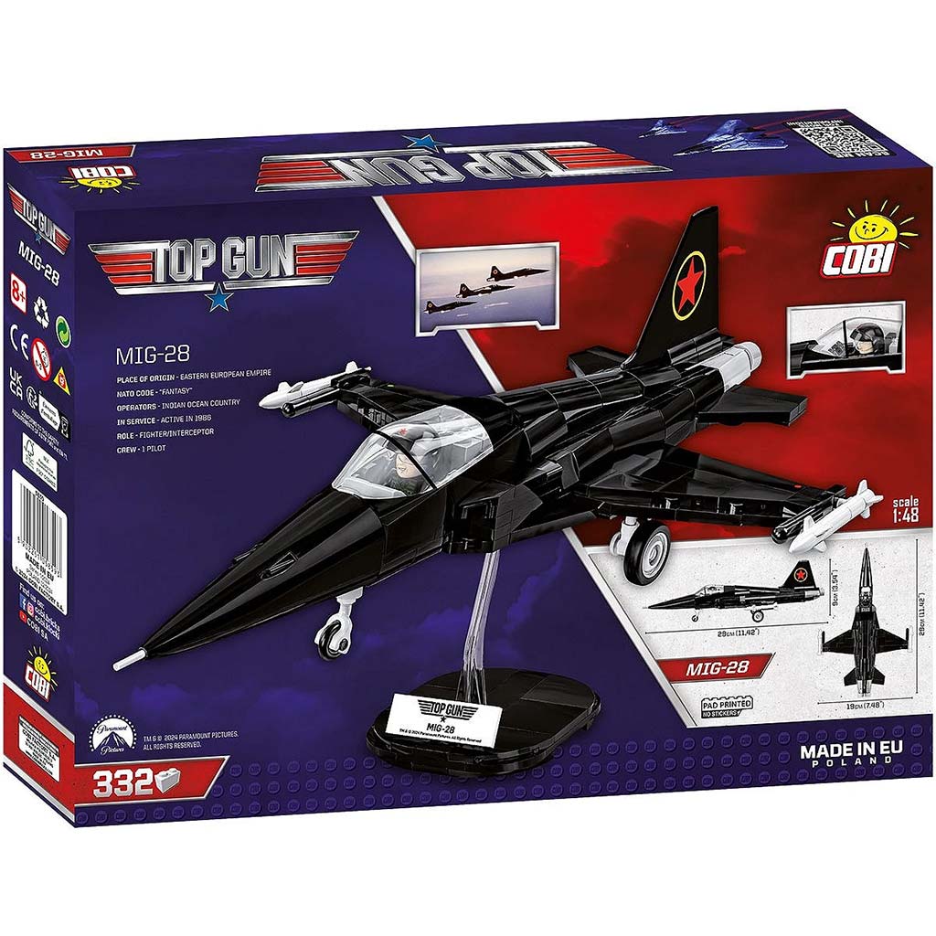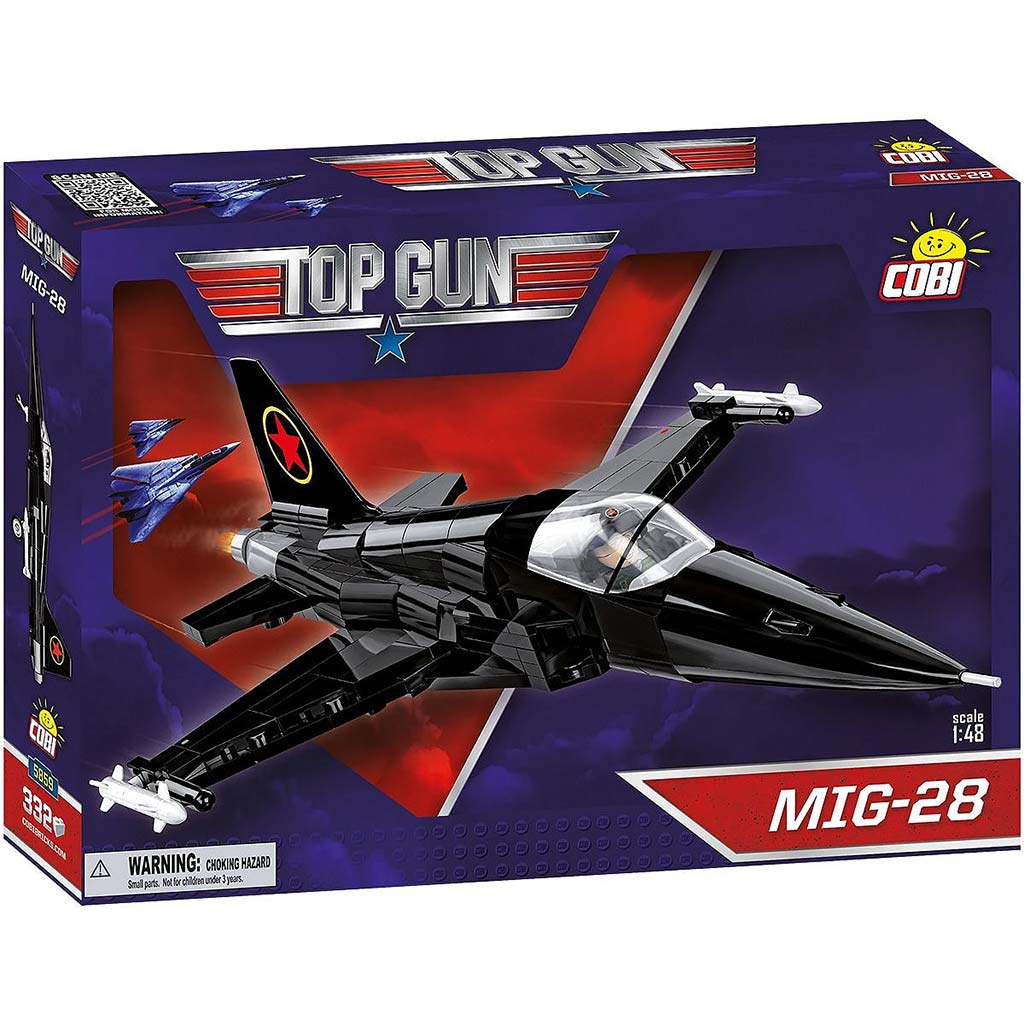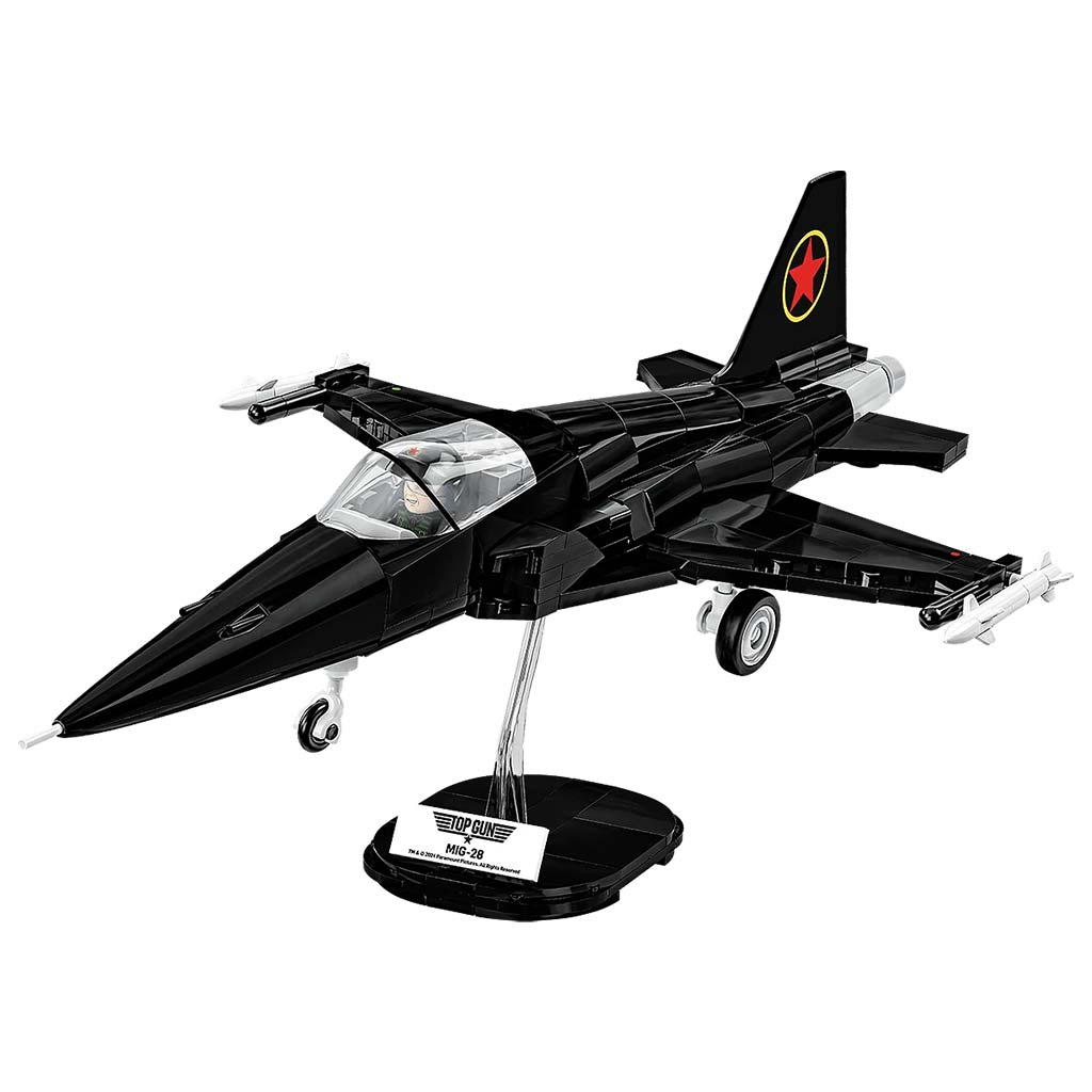 A COBI MiG-28 „TOP GUN” repülőgép építőkészlet a legendás 1986-os Top Gun film egyik legismertebb filmes repülőgépét kelti életre. Bár a MiG-28-nak a valóságban nincs megfelelője, a film kedvéért egy átfestett Northrop F-5 Freedom Fighter szolgált alapul, hogy megformálja a „titokzatos ellenséges hatalom” vadászgépét. A fekete színű festés és a vörös csillag embléma a film ikonikus elemei közé tartoznak, és most mindez részletgazdagon jelenik meg ebben a hivatalos licenccel készült modellben.