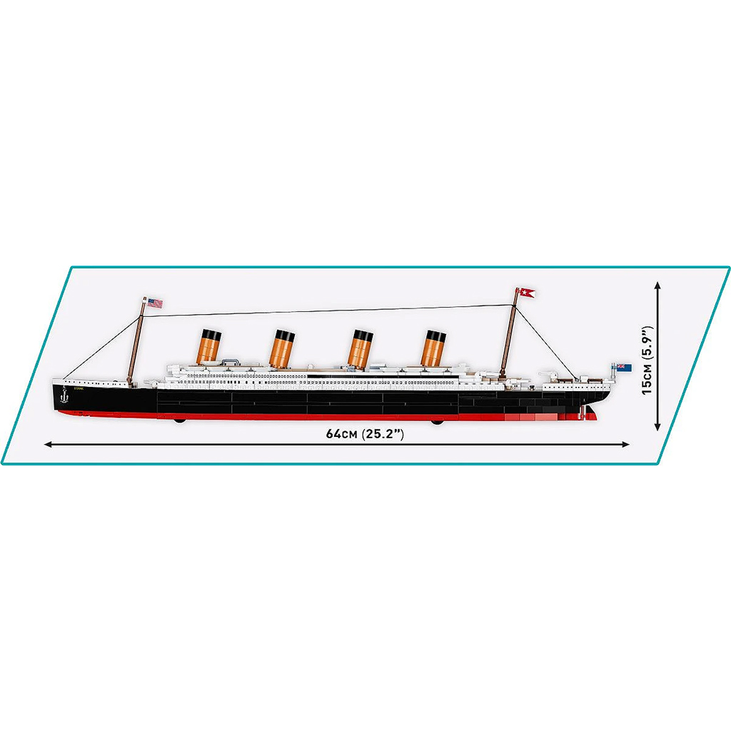 A COBI: RMS Titanic (1929) építőjáték szett egy igazán különleges darab minden történelemrajongó gyerek számára. Az 1912-es tragikus események során elhíresült Titanic történetét most ti is feleleveníthetitek egy lenyűgöző, 1:450 méretarányú modell segítségével. A szett 722 darabból áll, a kész hajó pedig 64 cm hosszú és 15 cm magas – vagyis igazán látványos, mégis könnyen kezelhető. A részletes kidolgozásnak és mozgatható elemeknek – daruknak, hajócsavaroknak, kormánylapátoknak – köszönhetően ez nem csupán egy kiállítási darab, hanem egy játékra is alkalmas modell.