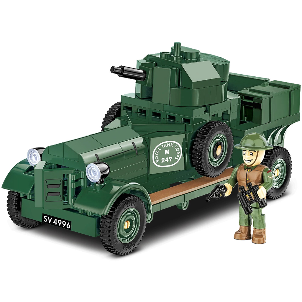 A COBI Rolls Royce páncélautó építőkészlet a híres 1920 Pattern Mk I modellt idézi meg, amely az egyik legismertebb brit páncélozott jármű volt a két világháború között és a második világháború idején is. A különleges formavilágáról és sokoldalú felhasználásáról ismert jármű most 1:35 méretarányban, 267 darab kiváló minőségű építőelemből építhető meg. A kész modell méretei: 16 cm hossz, 6 cm szélesség és 8 cm magasság, így arányaiban hűen adja vissza az eredeti járművet.