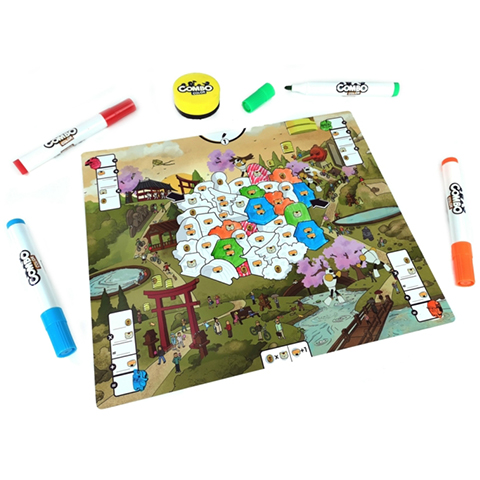 A Combo Color egy stratégiai családi játék amit egészen biztos, hogy a gyerekek épp úgy élvezni fognak, mint a felnőttek, akik azt hitték, hogy már kinőttek a színezők világából. Fedezd fel és terjeszd ki a területedet úgy, hogy sorban kiszínezed a táblán a megfelelő területeket, miközben különféle szimbólumokat is gyűjthetünk amit a lehető legtöbb pont megszerzése alapján kombinálhatunk. Amikor az egész tábla be van színezve, itt az ideje, hogy megszámold a pontokat! A játék során hat gyönyörű játékvilágot lehet felfedezni, amelyek három eltérő nehézségi szinttel rendelkeznek. A készletben található filcek nyomát egyszerűen le lehet törölni a táblákról, így újra és újra lehet velük játszani!