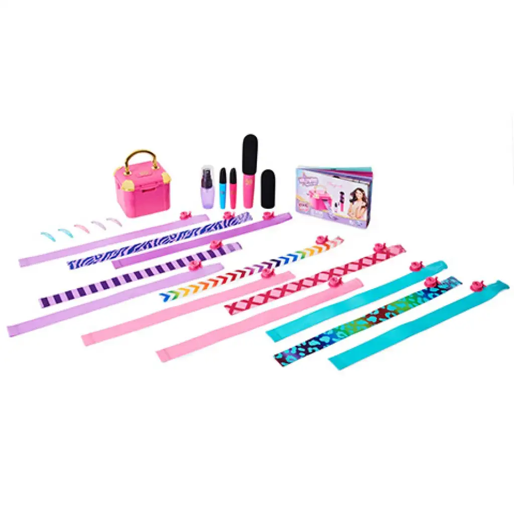 A Cool Maker termékek igen népszerűek a kislányok körében, hiszen elképesztően vagány és csinos dolgokat készíthetnek a segítségükkel. A Hollywood Hair hajstúdió egy olyan készletet rejt magában, aminek a segítségével a lányok igen mutatós szalagokat készíthetnek, amelyeket aztán a hajukba fűzhetnek. A készlet egy praktikus és mutatós kis táskában érkezik, megtalálható benne minden ami a mutatós hajtincsek elkészítéséhez szükséges. Többféle szalag, minták, és persze egy útmutató, ami segíti a gyerekeket a legvagányabb dolgok elkészítésében.