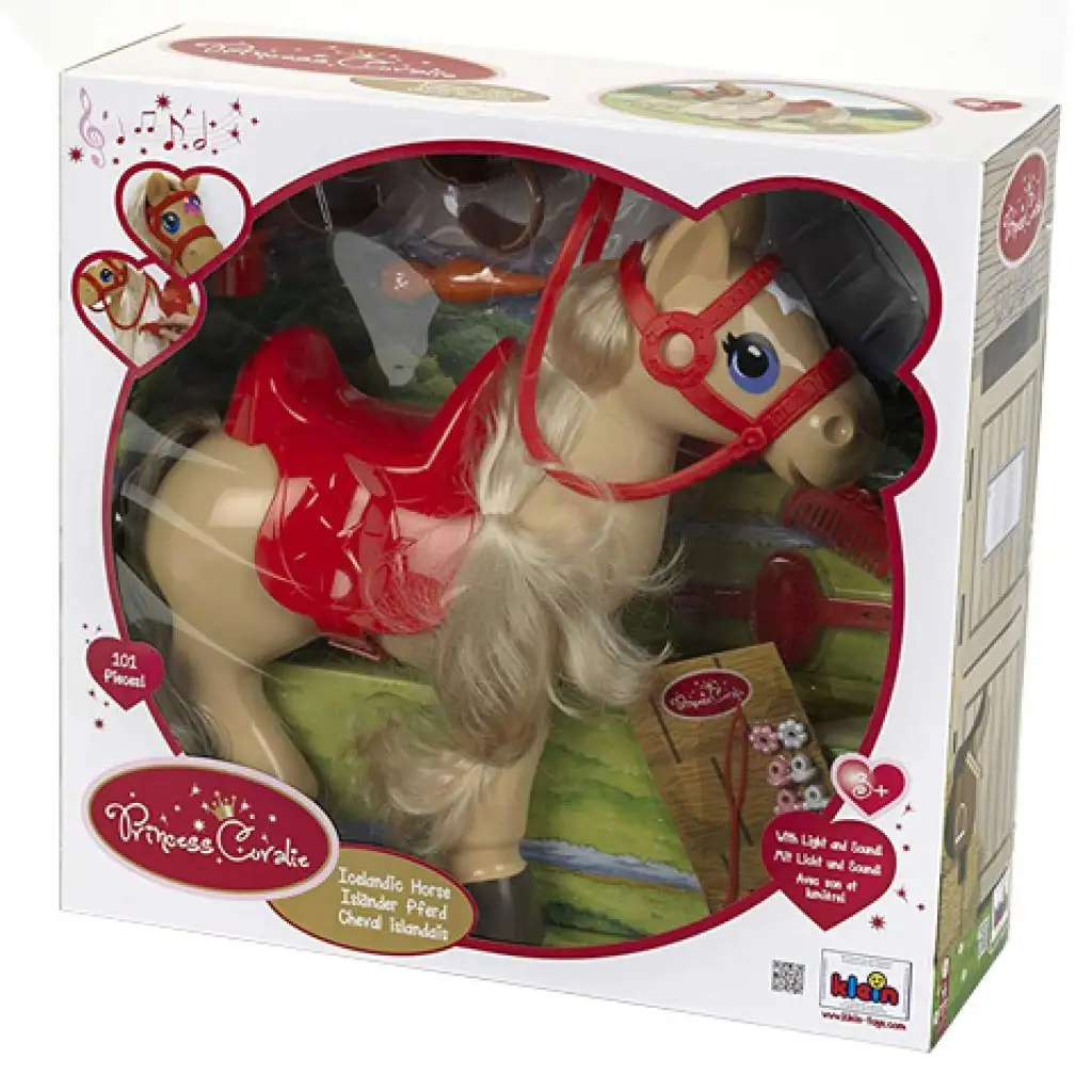 A csodaszép lovacska hosszú sörényét és farkát, szépen megkefélve és akár befonva készítheted fel őt a következő versenyre. A készletben természetesen a több mint harminc centiméteres ló mellett megtalálod a különféle fésűket és keféket, és néhány matricát, amivel még csodálatosabbá varázsolhatod őt. A doboz hátulján kivágató apróságokat találsz amelyek között az ugratóakadályt és néhány finomságot is akad.