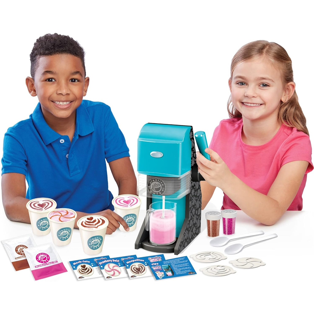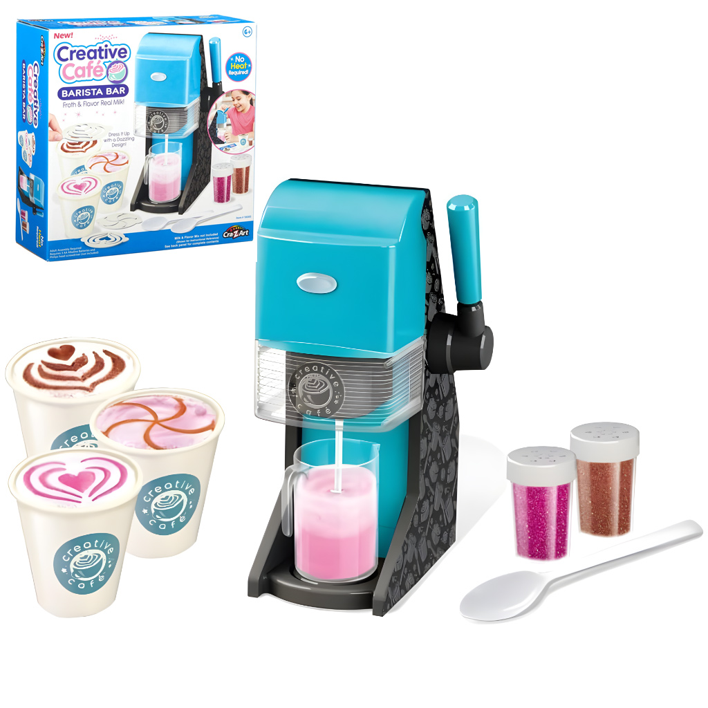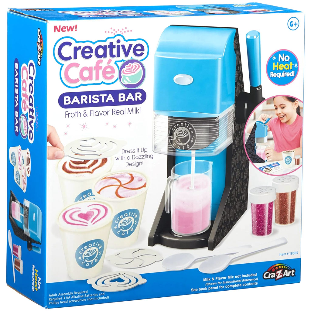 A Creative Café Barista Bar segítségével a kicsik igazi baristává válhatnak! Ez a rendkívül stílusos Barista bár egy valódi kávézó gépét idézi meg és egy akkumulátoros habverőt tartalmaz, amely valódi tejet habosít, hogy fantasztikus kávéházi alkotásokat készítsenek - és ehhez nem szükséges meleg víz vagy párásító!