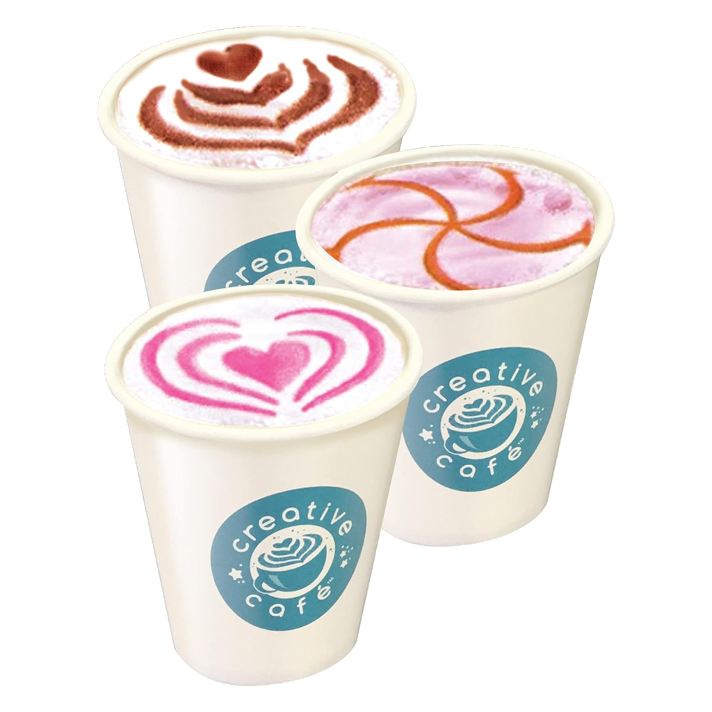 A Creative Café Barista bár használata rendkívül egyszerű, szórakoztató és biztonságos! Csak kövesse a mellékelt receptkártyákat a por alap keveréséhez, majd húzza meg a kart, amíg a por el nem keveredik. Ezután jöhet a tej felhabosítása! Miután ezzel készen van, öntsük az alapkeverék tetejére, hogy szépen habos legyen! Végül pedig használja a sablonokat és a porokat, hogy lenyűgöző dizájnt hozzon létre a italain! Élvezze a kávéházi mesterművek elkészítését!