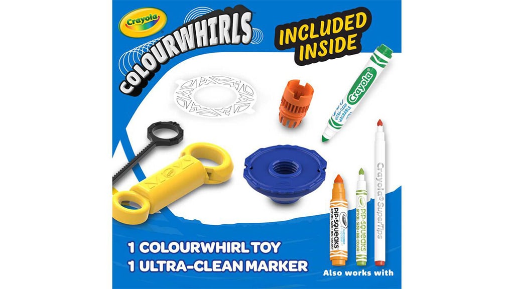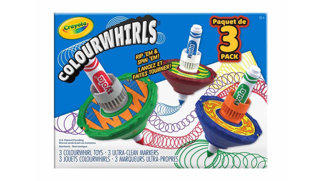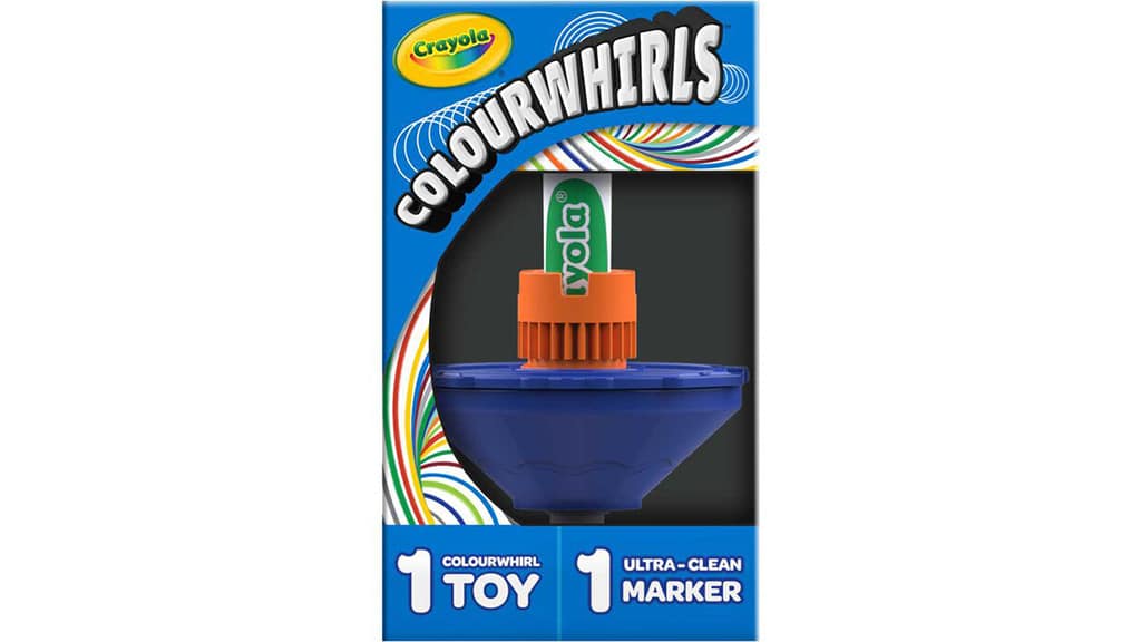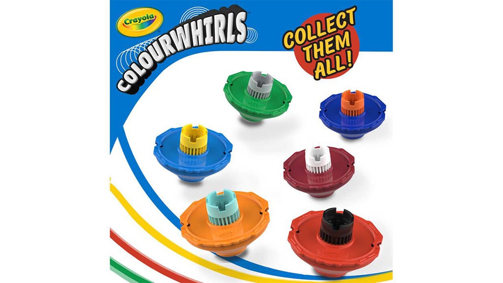 A gyerekek színes spirál műalkotásokat készíthetnek a Crayola Colourwhirls segítségével. Ez a "kézműves készlet" ötvözi a klasszikus pörgettyű játékot a márka mosható filctollaival, így egy új módot kínál a játékra és az alkotásra. Miután a filctollat behelyezték a pörgettyűbe, a gyerekek a fogantyú és a húzózsinór segítségével forgathatják a pörgettyűket, és spirál műalkotásokat hozhatnak létre. A Colourwhirls egyesével és három darabos készletben is kapható, és kompatibilis más Crayola termékekkel, beleértve a vastag és vékony vonalú filctollakat, a pip-squeaks-et és a super tips-et.